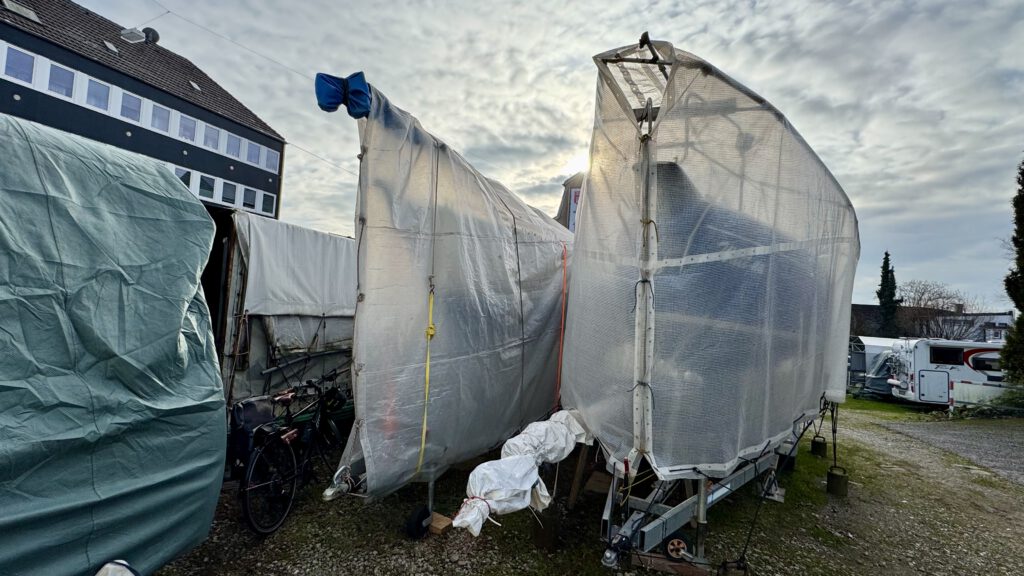 Ich hatte das Glück in der Nähe meines Wohnortes über den Winter eine Halle zur Verfügung gestellt zu bekommen. So konnte ich einen Decksbelag aufbringen und alle Anbauteile wieder installieren. Der Transport nach Holland erfolgte reibungslos mit dem neuen Trailer und am Ostermontag bekam die APHRODITE wieder den Kontakt zum Salzwasser des Veersemeers. Dann endlich die ersten Segelschläge mit salziger Gischt im Gesicht. 15-20 kn Wind – das ist ein toller Einstieg in die Saison, wie habe ich das vermisst. 🤩